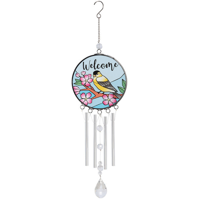 14.5" Stained Glass Chime - Yellow Finch 'Welcome' 10509