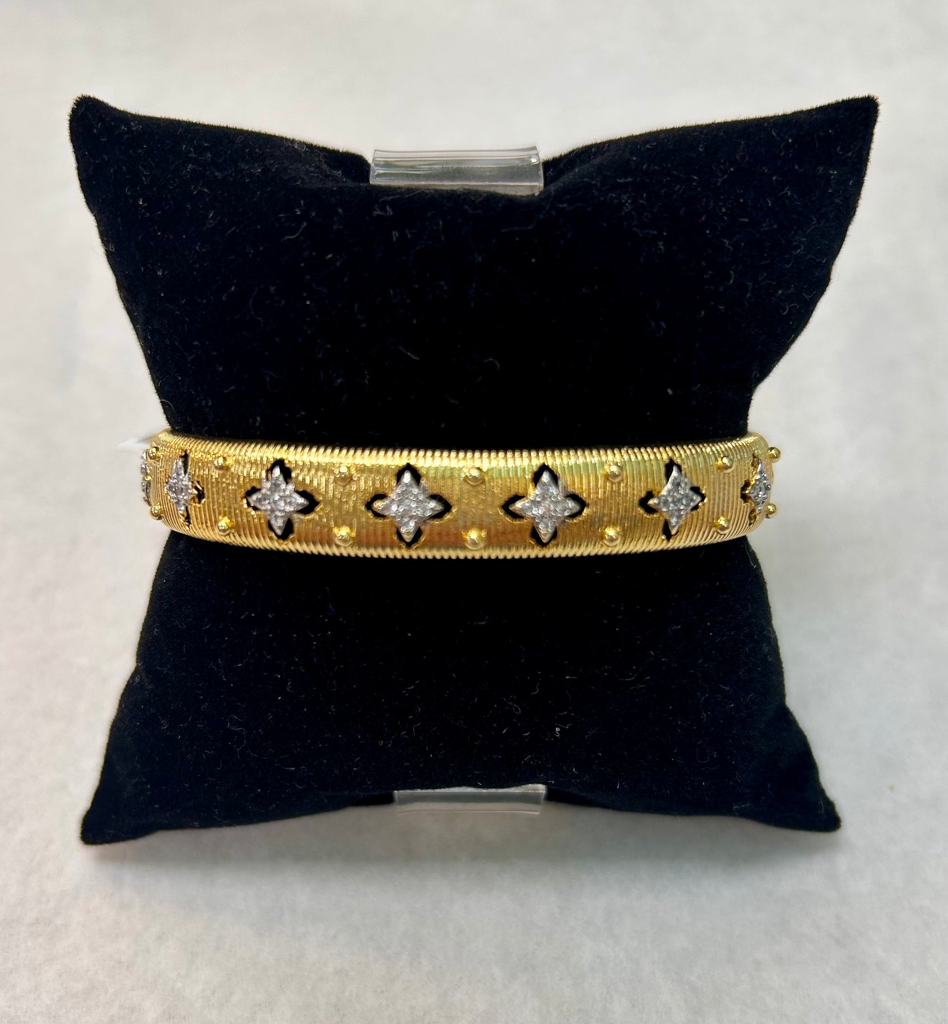 14k Gold Plated Cuff Bracelet with Rhinestone Flower Design