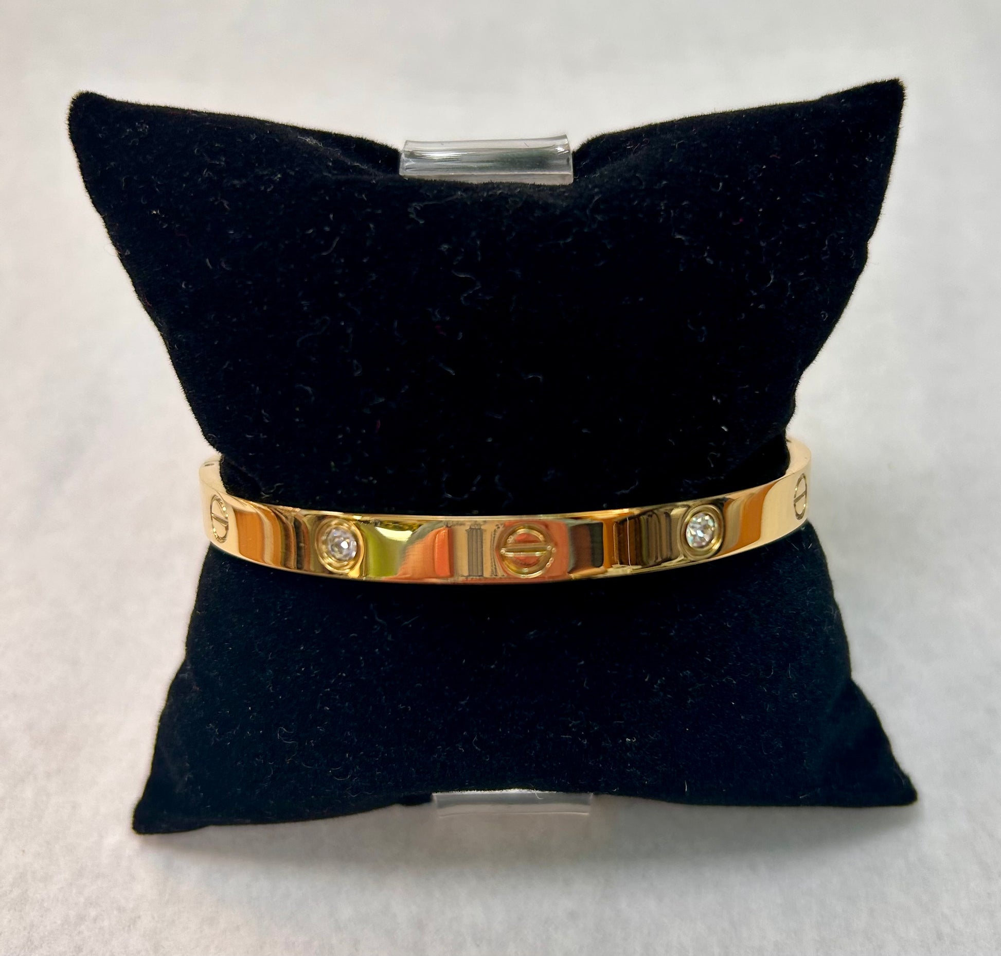 14k Gold Plated Love Bangle Bracelet with Rhinestones