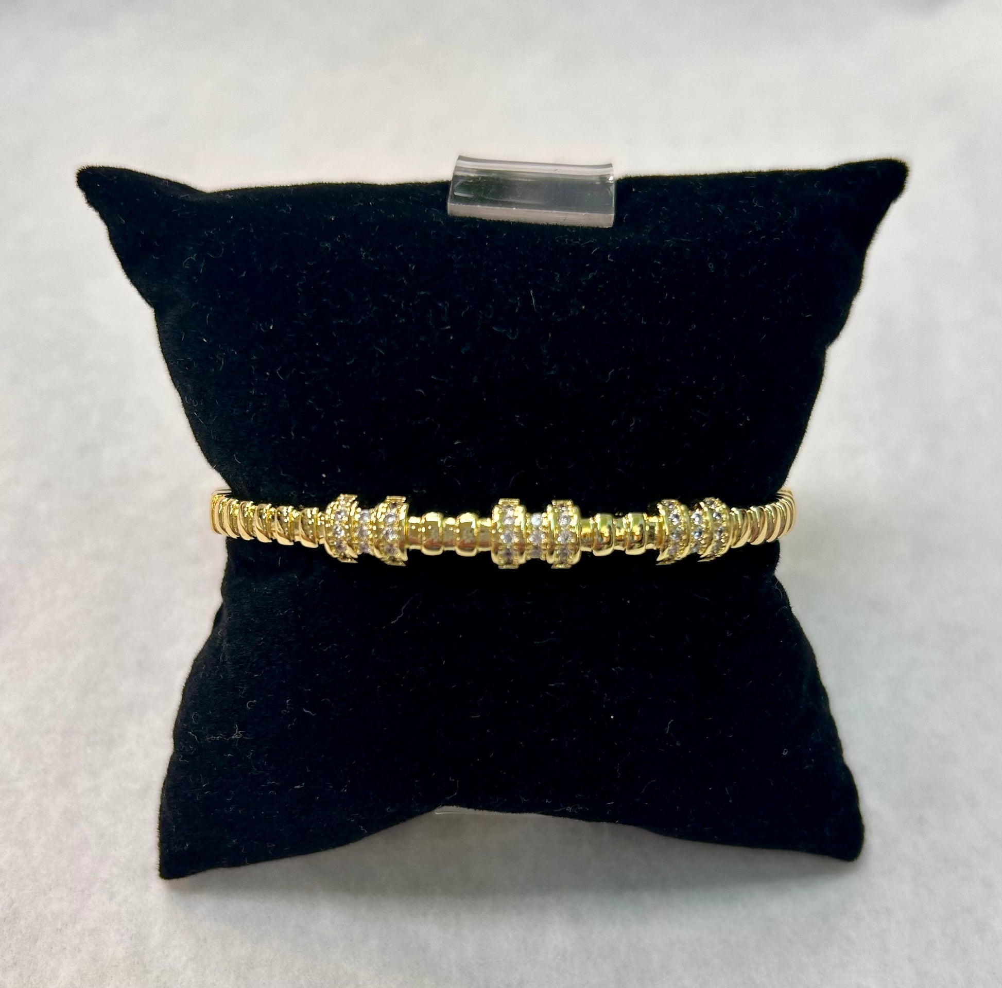 14k Gold Plated Thin Bangle with Rhinestones