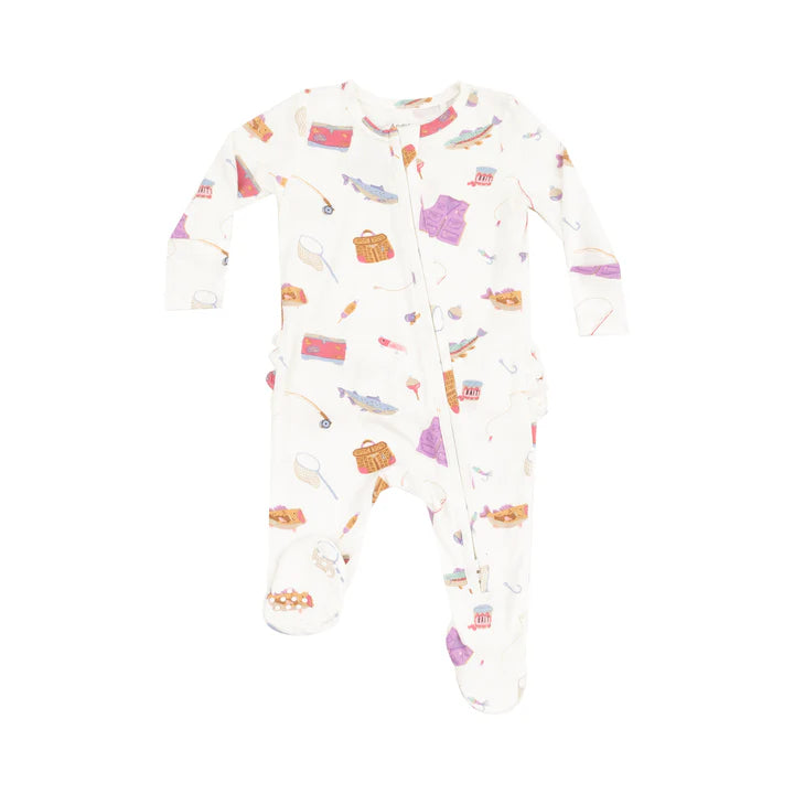 2 Way Zipper Ruffle Back Footie - Fishing Things Pink
