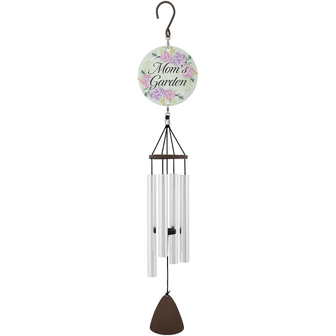 This lovely wind chime is a perfect gift for mom. It will bring wonderful music to her garden and create the perfect atmosphere for sitting in the garden. The 27" Picture Perfect Chimes feature a header that is designed and printed right here in the USA! All aluminum construction with an adjustable striker and strung with industrial cord. 3/4" Diameter tubes.