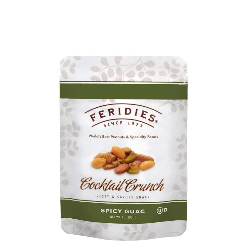 Looking for a delicious and easy snack to share with friends and family? Look no further than FERIDIES Spicy Guac Cocktail Crunch! This flavorful mix of Virginia Salted Peanuts, Butter Toffee Peanuts, Salted Almonds, Everything seasoned sesame sticks, tangy buffalo seasoning, and spicy guac bites is the perfect way to spice up any get-together. We believe life is about good friends, good food and good times. So go ahead and enjoy a little spice, a little sweet and a whole lot of flavor with FERIDIES Spicy Guac Cocktail Crunch. 3 oz. bag.