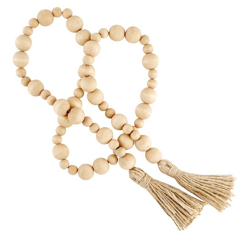 Accent your home décor with our new wood beads. The finishing touch to create a farmhouse, warm, welcoming touch. Maple beads: 54" l.