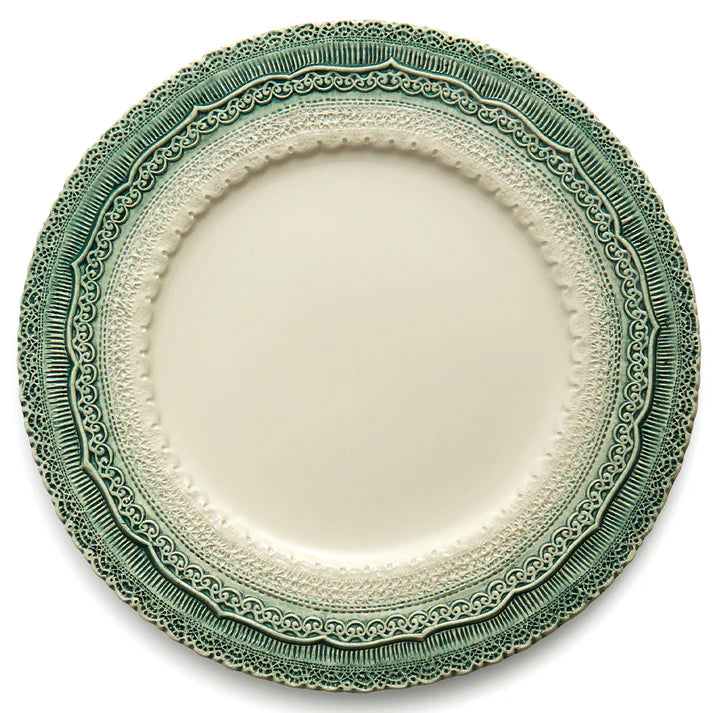 Our popular Finezza Green Charger creates an entirely new look for your table. Garden party anyone? Italian ceramic, handmade in the Veneto region of Italy.