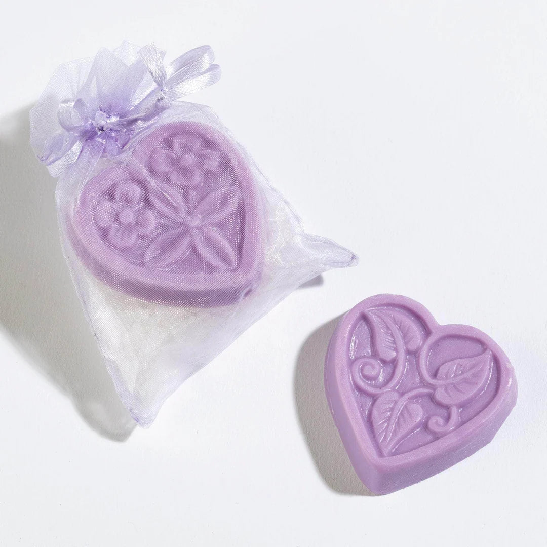 Wonderful for party favors or bridesmaids' gifts or individual indulgent baths at home! Our soft fragrant hand-poured mini soap paired with beautiful detoxifying bath salts infused with the highest grade lavender essential oil available. The two are tied together with a lavender ribbon and bow making a lovely gift.