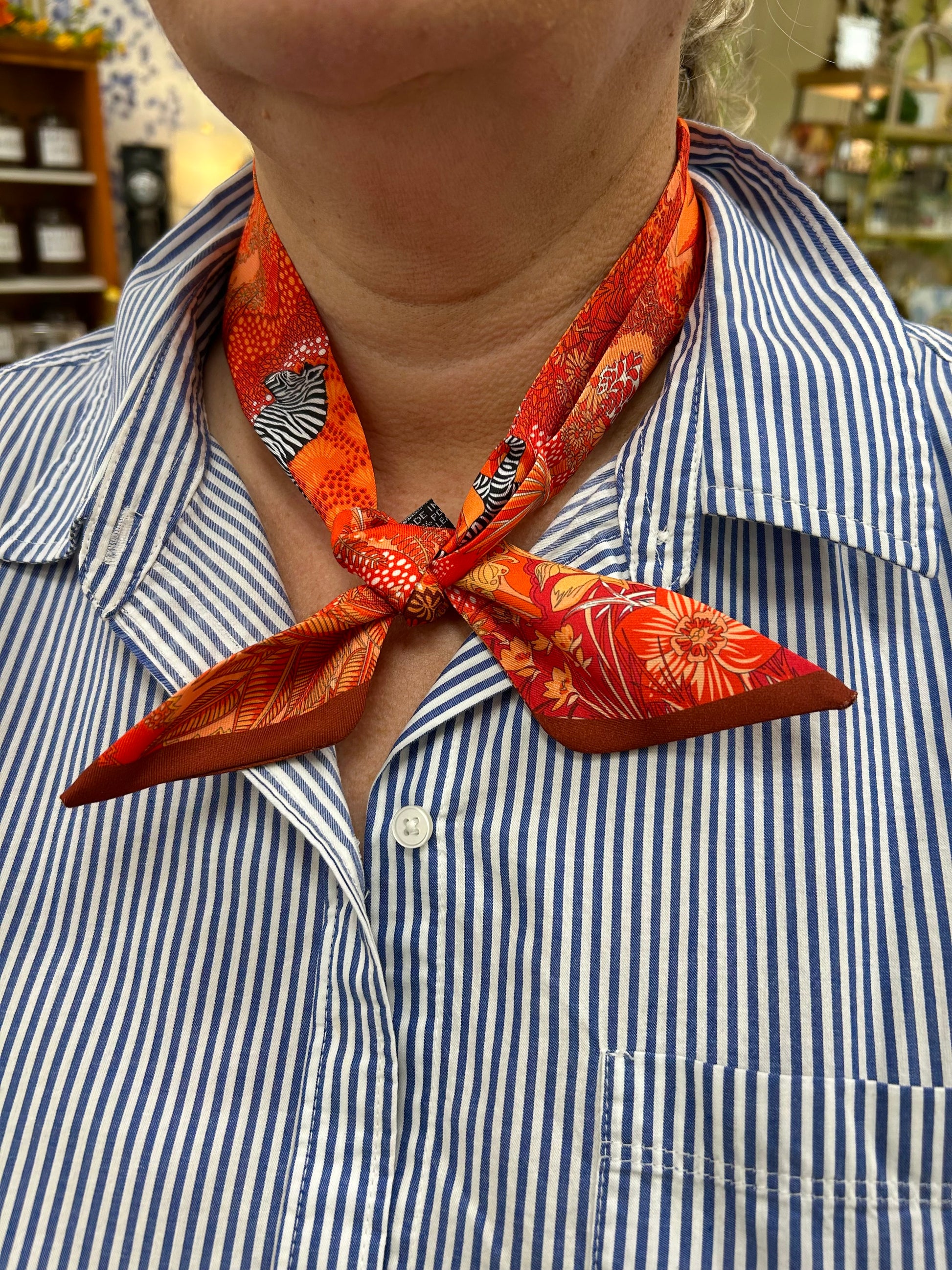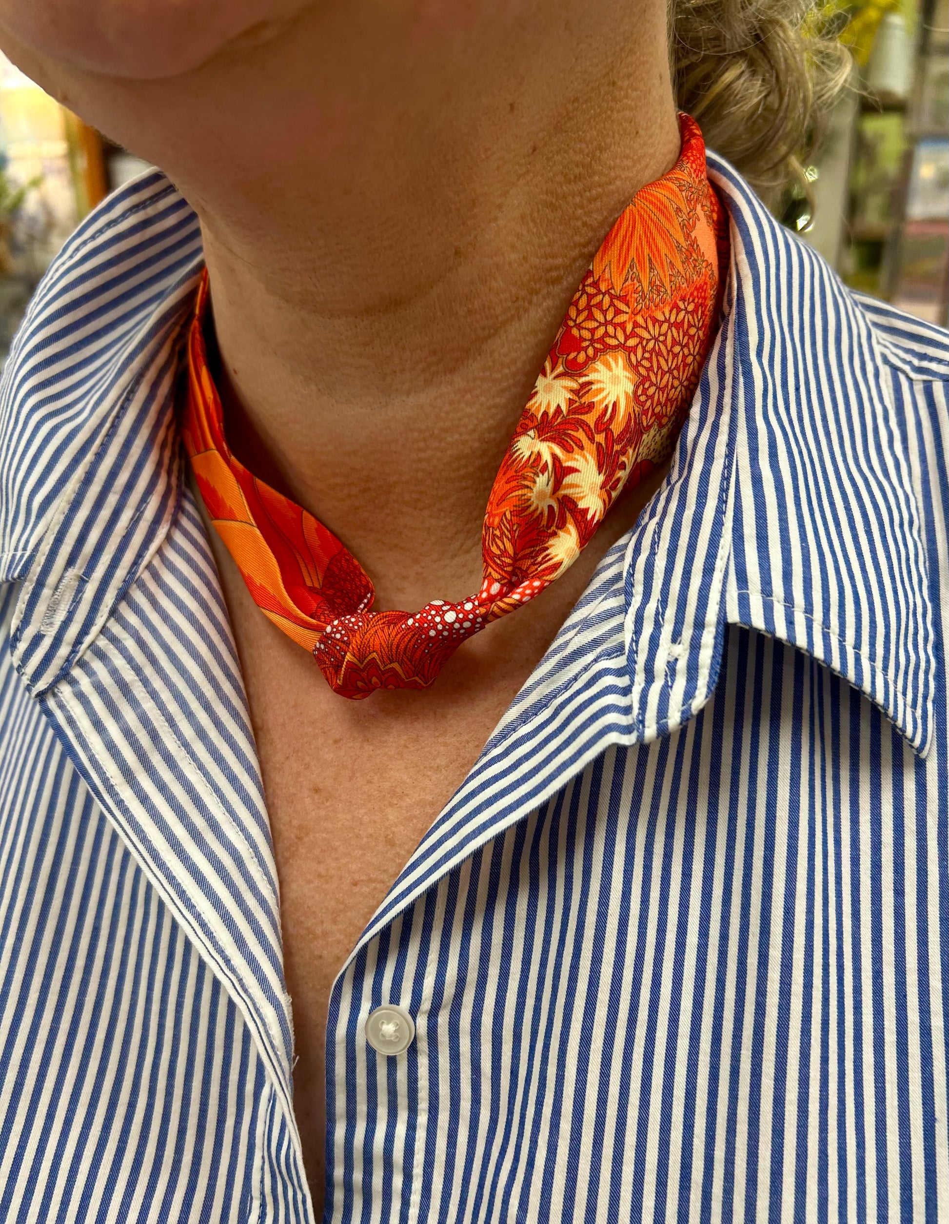 This versatile burnt orange necktie scarf is perfect for wearing on its own or as a base for one or more charms. Dress it up or down—tie the knot in the front for a bold look or in the back for a sleeker style. However you're feeling that day, this scarf lets you wear it your way.
