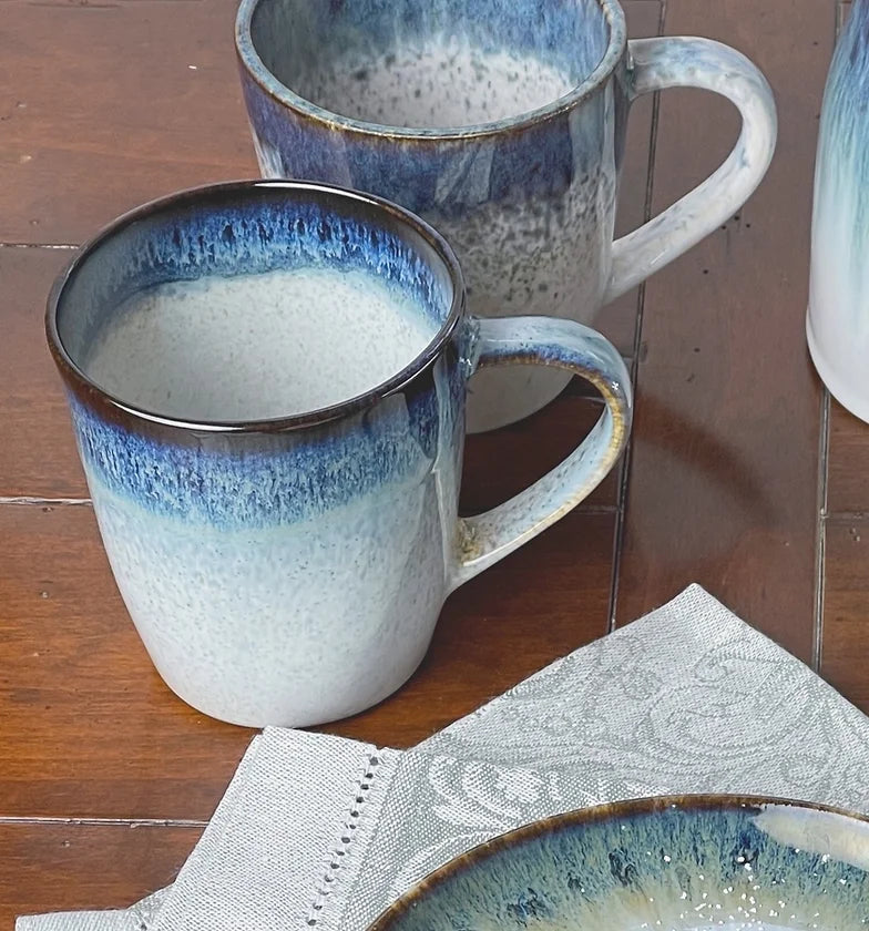Cypress Grove adds a dramatic look to your home with the beauty of reactive glazes with stunning blues and browns. Add color to your day with this lovely mug, 3 1/2" diameter and 4" tall. Holds about 12 oz.