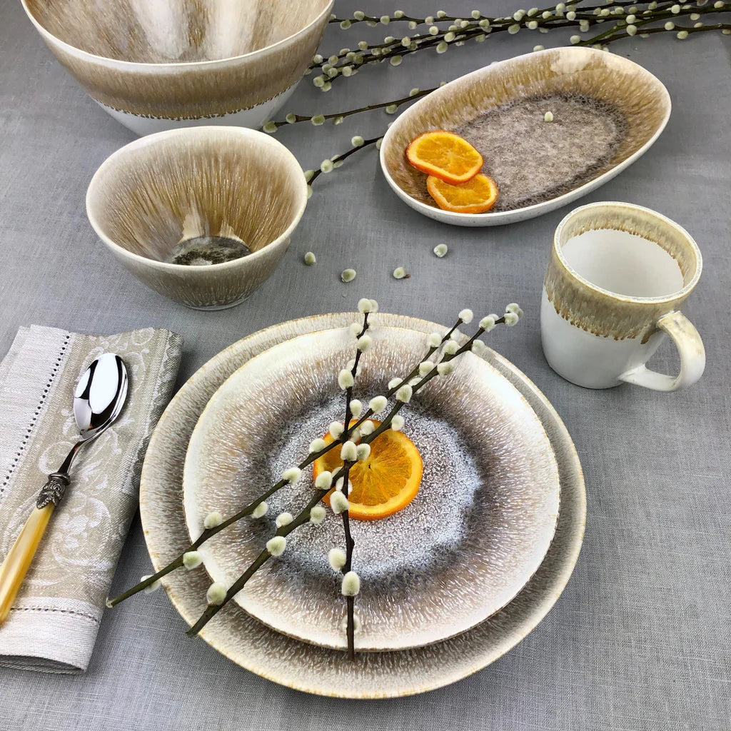 The Point Lobos Dinner Plate adds stylish charm to any dining experience. With a mixture of different shades of brown against a crisp white background, each plate is uniquely appealing thanks to the reactive glaze. Crafted in Portugal, this 10 1/4" plate is both durable and safe for use in the microwave and dishwasher. Elevate your everyday meals with the Point Lobos collection.