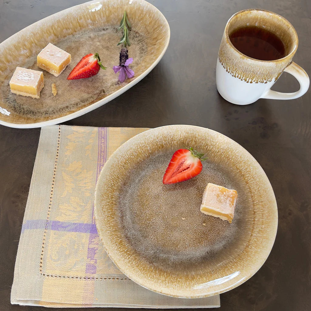 The Point Lobos collection brings stylish appeal to everyday dining. Different shades of brown mix with the white background in endless combinations. The reactive glaze makes each piece unique. The salad plates are 8 1/4" in diameter.