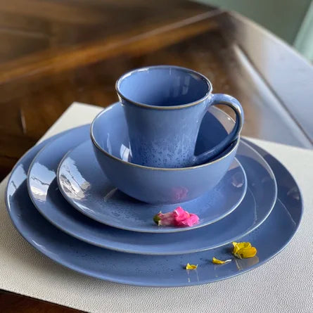 Rhapsody Blue brings home a lovely shade of blue inspired by the beautiful scenery around Carmel. A soft reactive glaze creates a galaxy effect with constant variety between pieces. The salad plates are 8 1/4" in diameter and pair with the dinner plates, soup/cereal bowls and mugs for the full dinnerware group.
