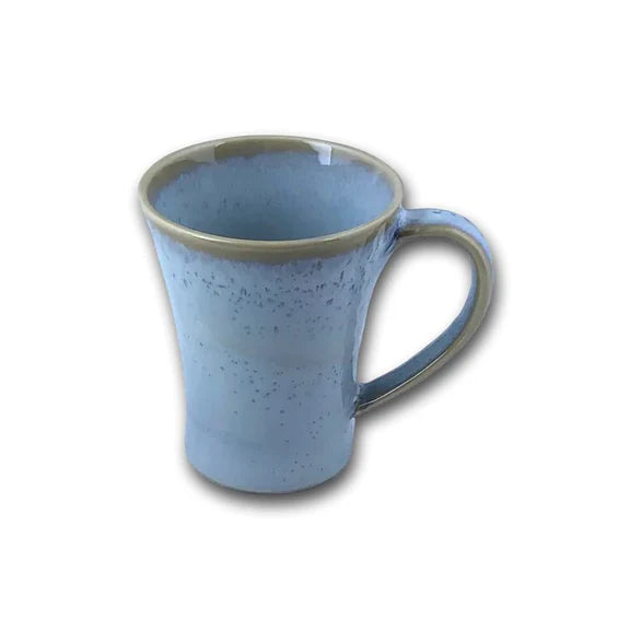 Rhapsody Blue brings home a lovely shade of blue inspired by the beautiful scenery around Carmel. A soft reactive glaze creates a galaxy effect with constant variety between pieces. Add color to your day with this lovely mug. 4 1/2" tall and holds about 12 oz.