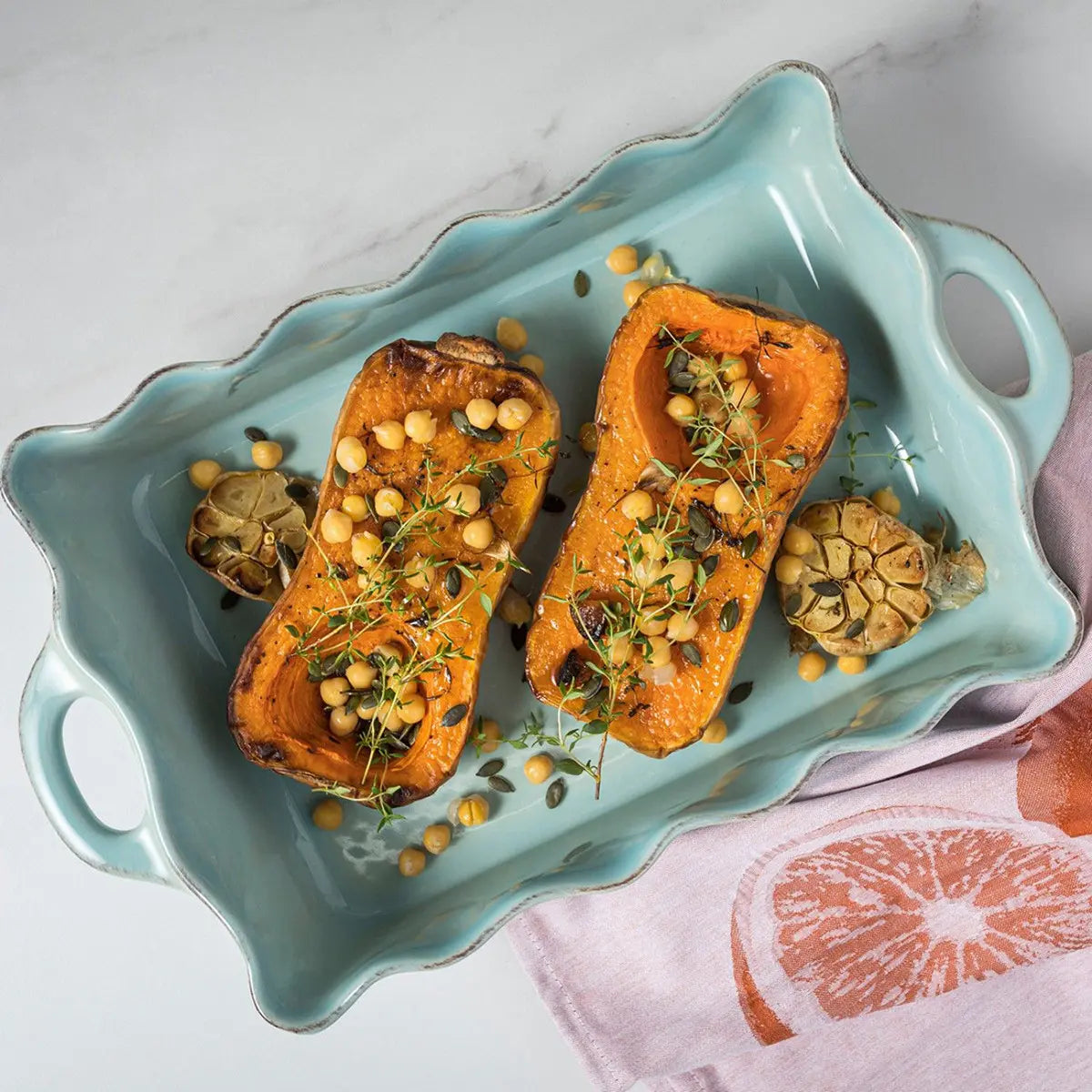 The Casafina Cook & Host Rectangular Bakers feature two handles for easy holding with oven mitts and is a work of art for all your baked creations. Made from fine stoneware. Made in Portugal. Microwave-safe, dishwasher-safe