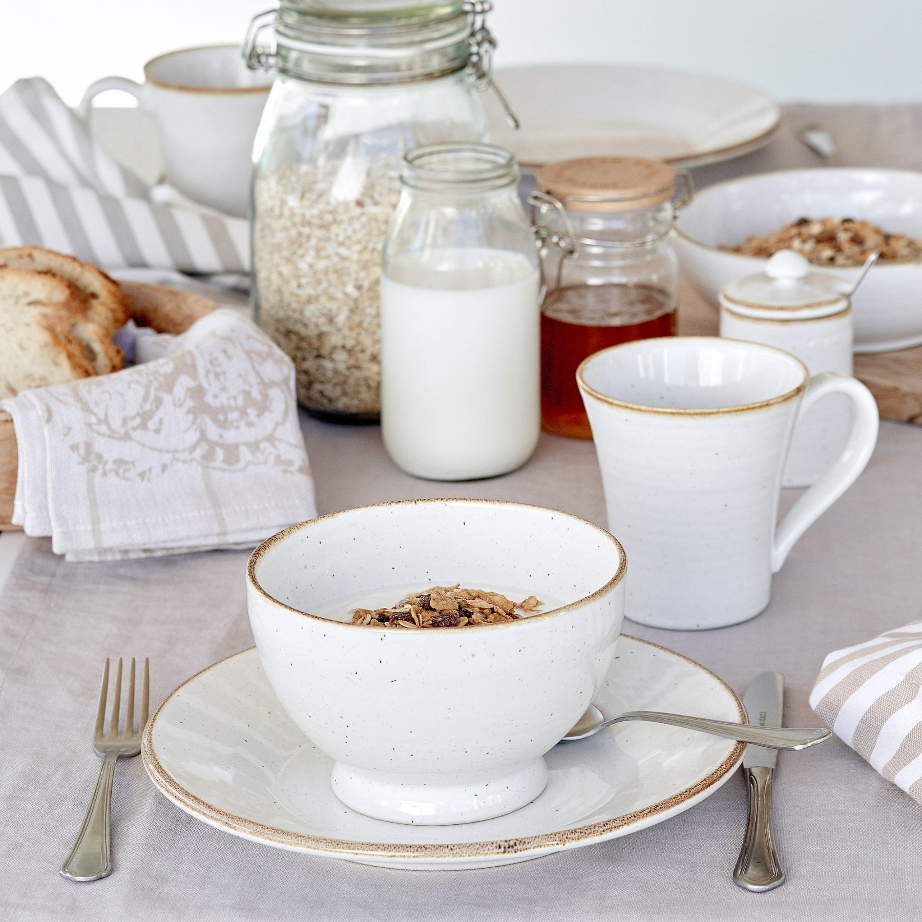 Sardegna has the artistic style of a potter’s creation. The collection includes generously sized dinnerware and a wide assortment of serveware and accessories that are amazingly durable, yet moderately lightweight. All pieces are hand-finished with rustic-looking glaze around the rim.
