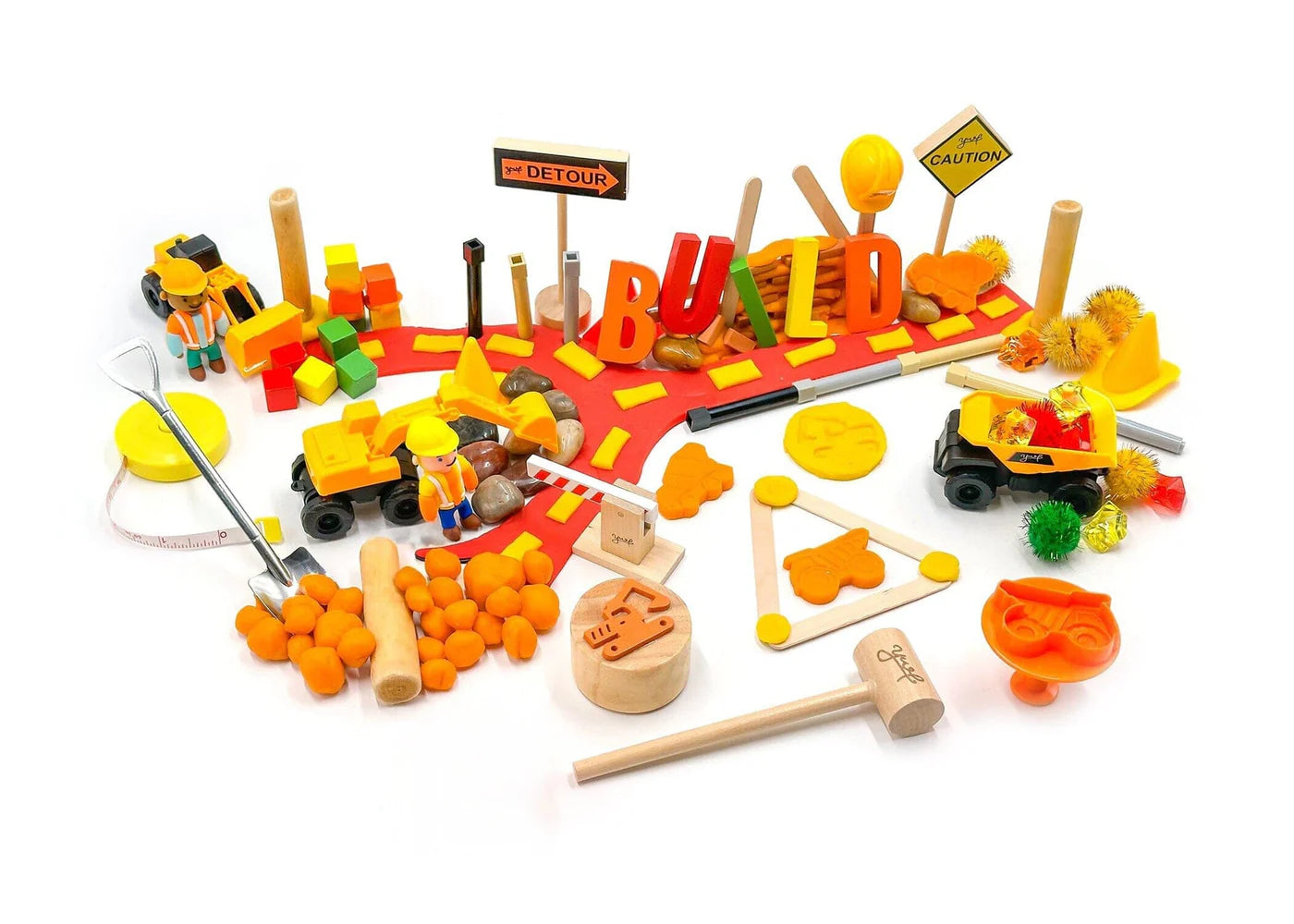 Your littles are going to *DIG* our brand new Construction Kit! This kit contains the perfect *mix* of sensory fun tools - including a rolling pin, mallet, nails, a hammer, construction trucks, dough stampers, a measuring tape, everything you need for a construction scene and more! Kids of all ages will enjoy the benefits of hours and hours of screen-free fun! This is not a *drill* - buy one today!!