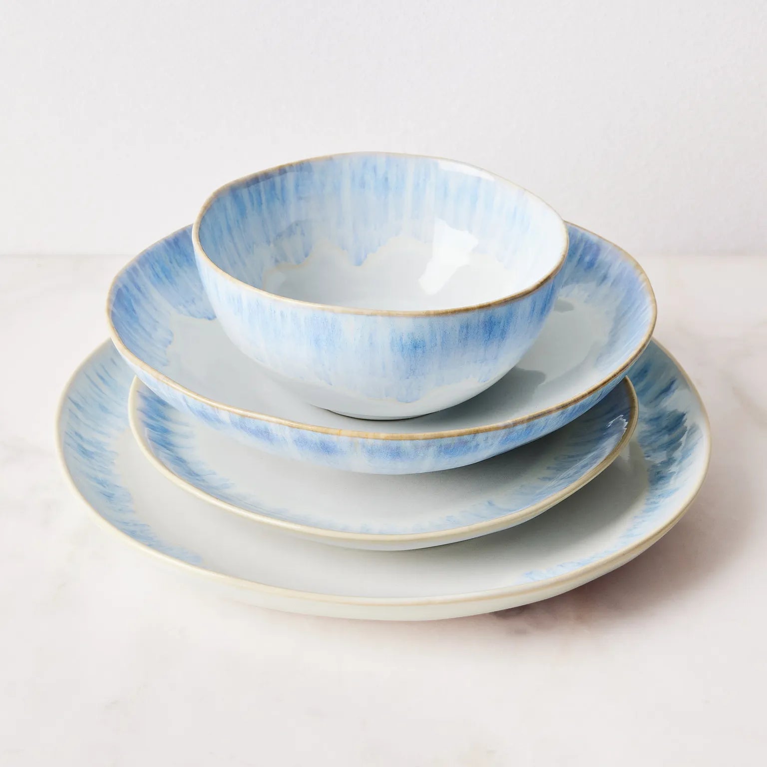 - Brisa is inspired by the cascades along the Algarve Coast. The blended white and blue glazes and the organic shapes make each piece one of a kind.