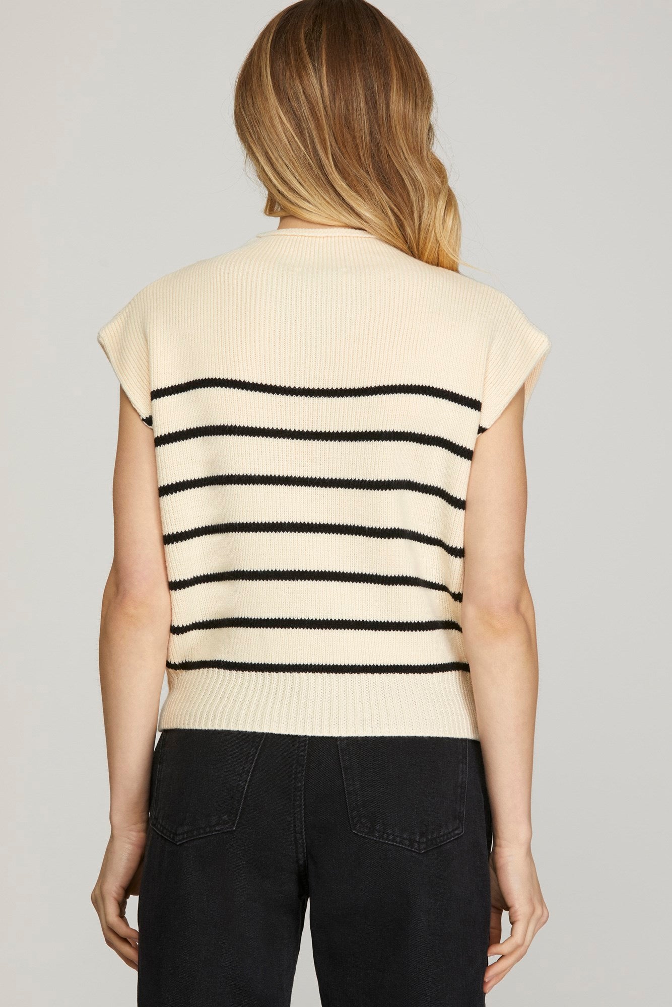 MOCK NECK STRIPED SWEATER VEST TOP