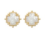 Dotted Cross White Gold Earrings