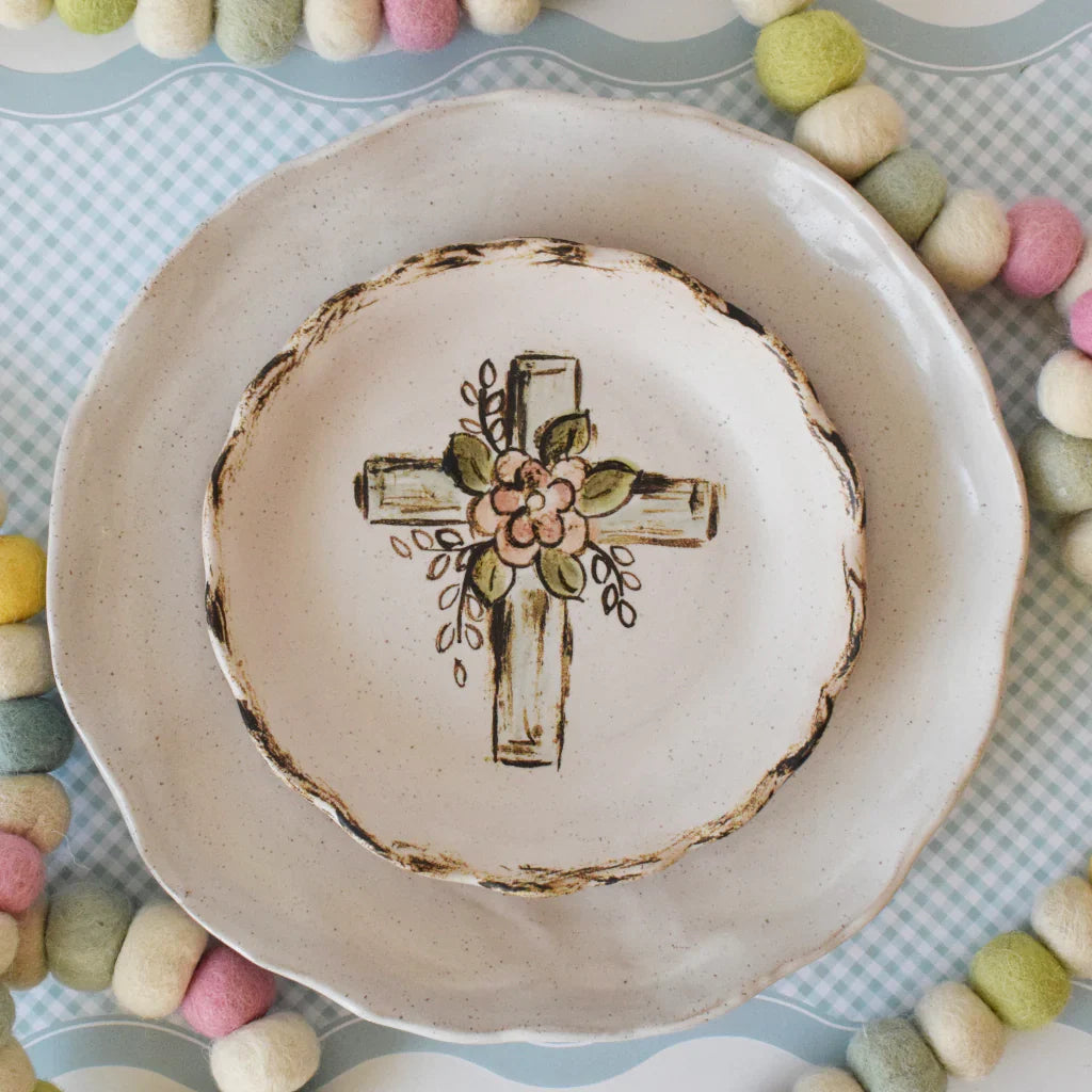 Celebrate Easter and welcome spring with our Floral Center Cross by Etta B Pottery! Perfect for adding a festive touch to your table, this charming piece captures the spirit of the season. Handcrafted with care, each piece of pottery is delightfully unique. A sweet gift, it’s sure to bring smiles and springtime cheer all season long!