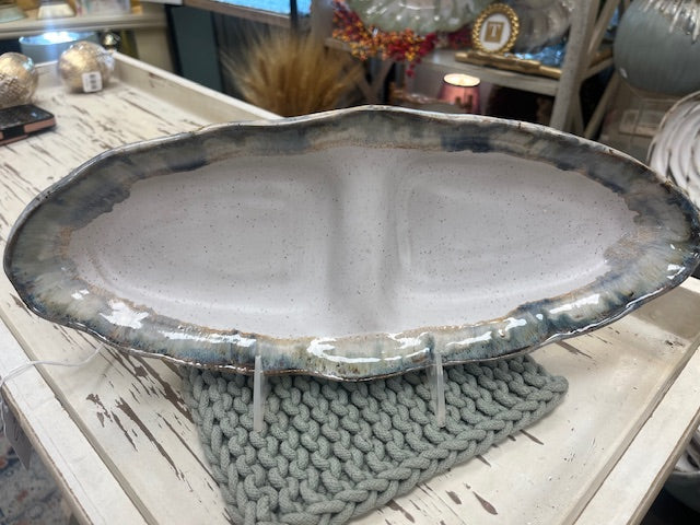 This 14.5 x 6 inch tray is divided into two sides and features lovely blue and gray hues