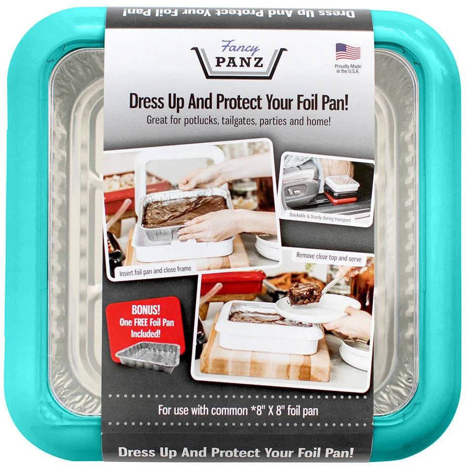 All of the conveniences of a foil pan dressed up in a Fancy Panz™! Simply place a standard 8x8 foil pan in your Fancy Panz™, remove the clear window and serve, or leave the window on and lift from the tab to help maintain food temperature and keep pesky critters away.