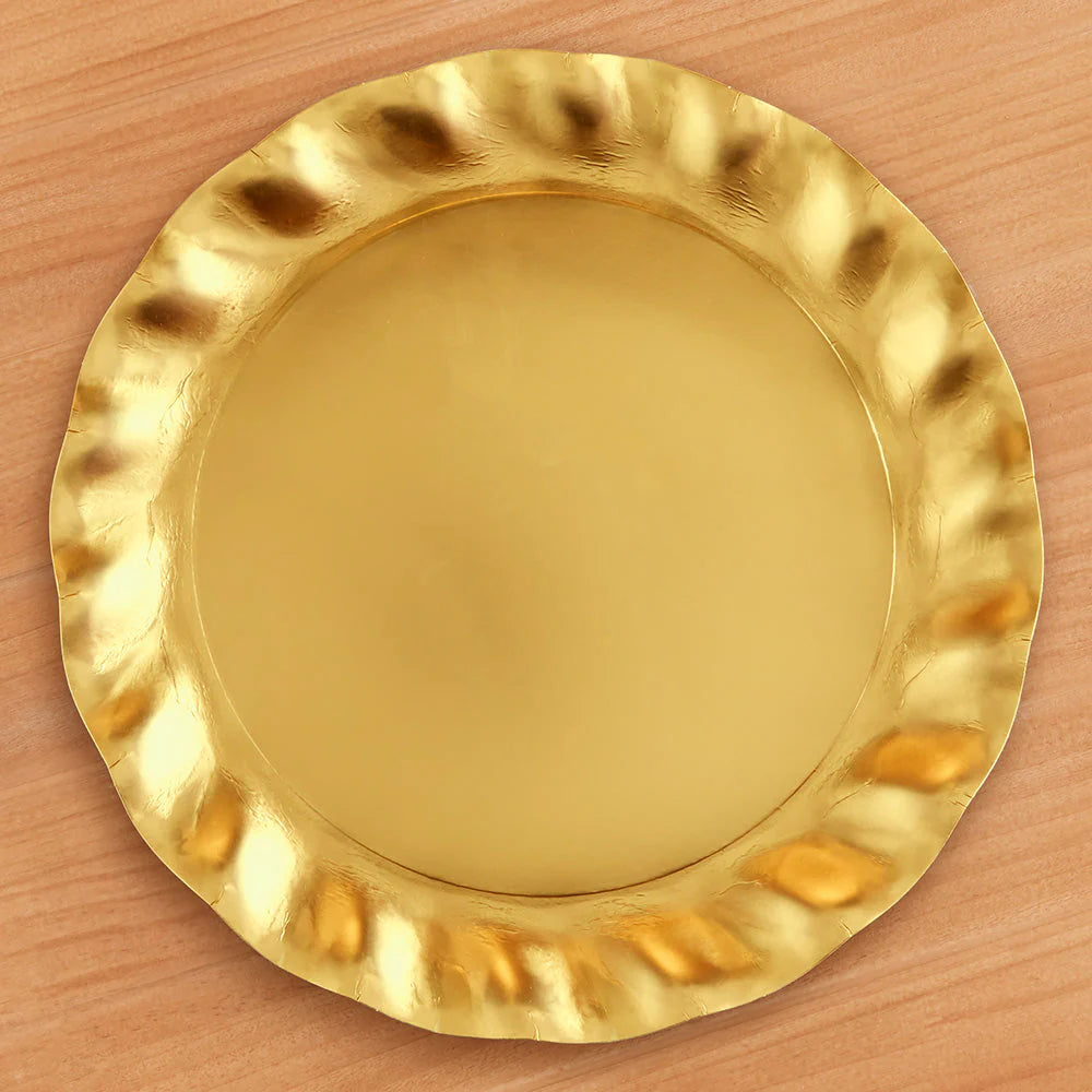 Bring the *wow* factor to your next dinner party with these Satin Gold Wavy Paper Chargers. In a color that works with any season or theme, these chargers bring elegance and texture to your tablescape and make cleanup a breeze.
