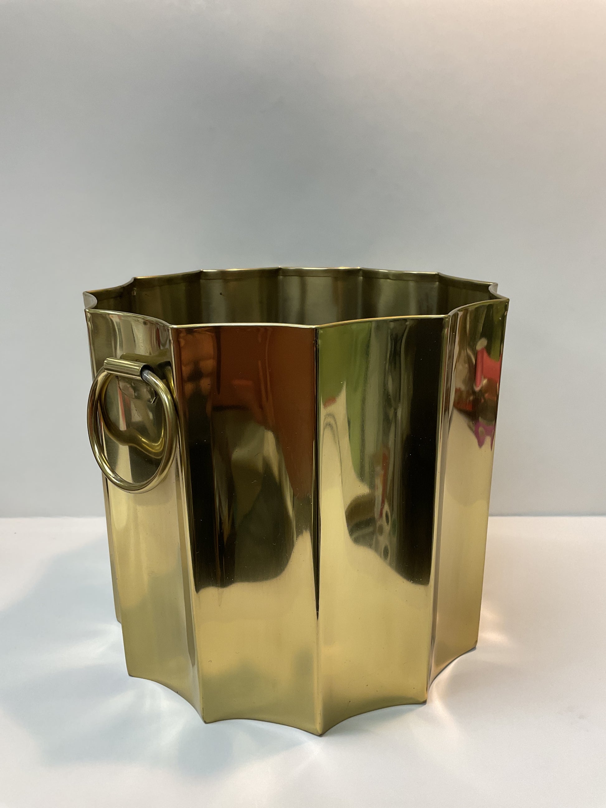 Perfect for a center piece. This ice bucket has a slight scalloped edge, and is large enough for ice and a bottle.