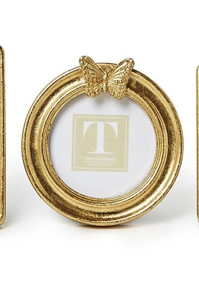 Golden Butterfly Gold Leaf Finish Round Photo Frame