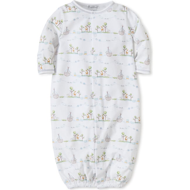 Noah's adorable animal friends pattern this cozy gown for your baby boy. Snaps on legs allow for easy conversion to playsuit. Made from the softest Pima cotton for ultimate comfort. Elasticized hem. Front snap closure; snaps convert gown to playsuit. Mitten-cuffs prevent scratching.