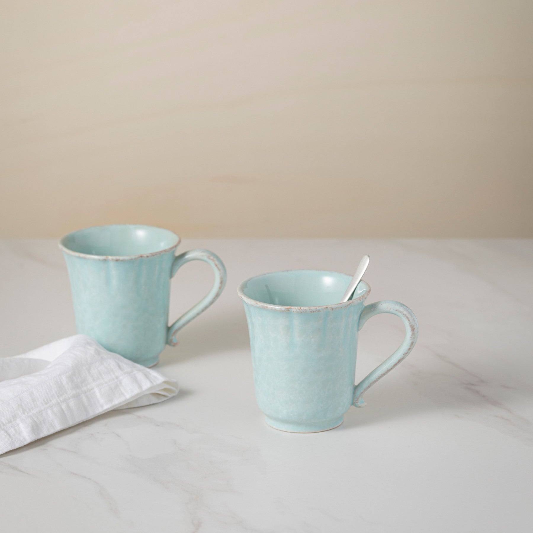 The Casafina Impressions Mug has scalloped edges and is hand glazed using a sponging technique. Made in Portugal.