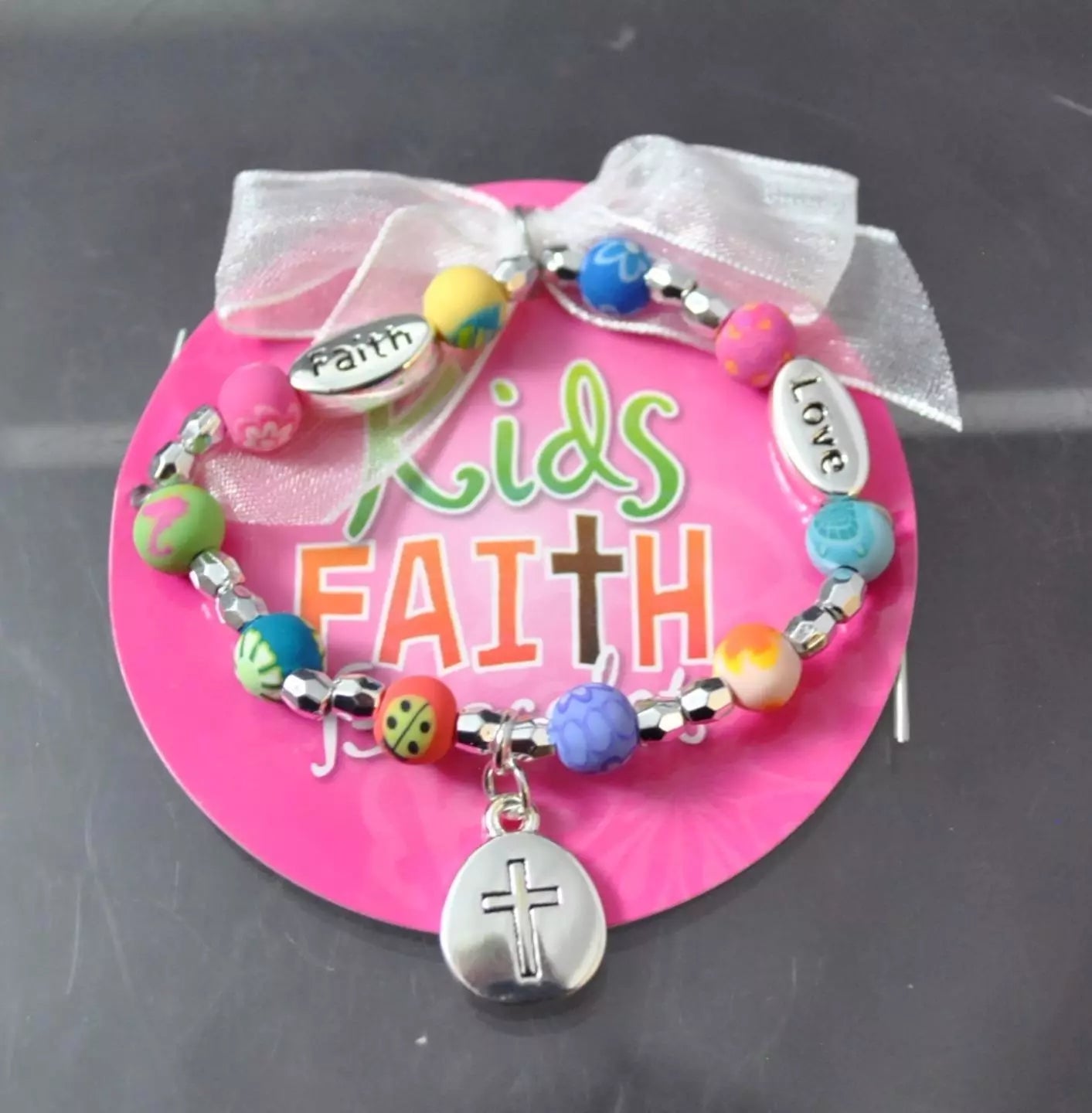 Jilzarah Girls Love Faith & Cross Charm Bracelet Polymer Clay Beads Age 3-6