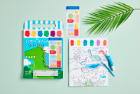 Take-along watercolor activity book features paint palette for each page, paint brush, double sided stamp marker and set of To/From stickers. Ages 3+.