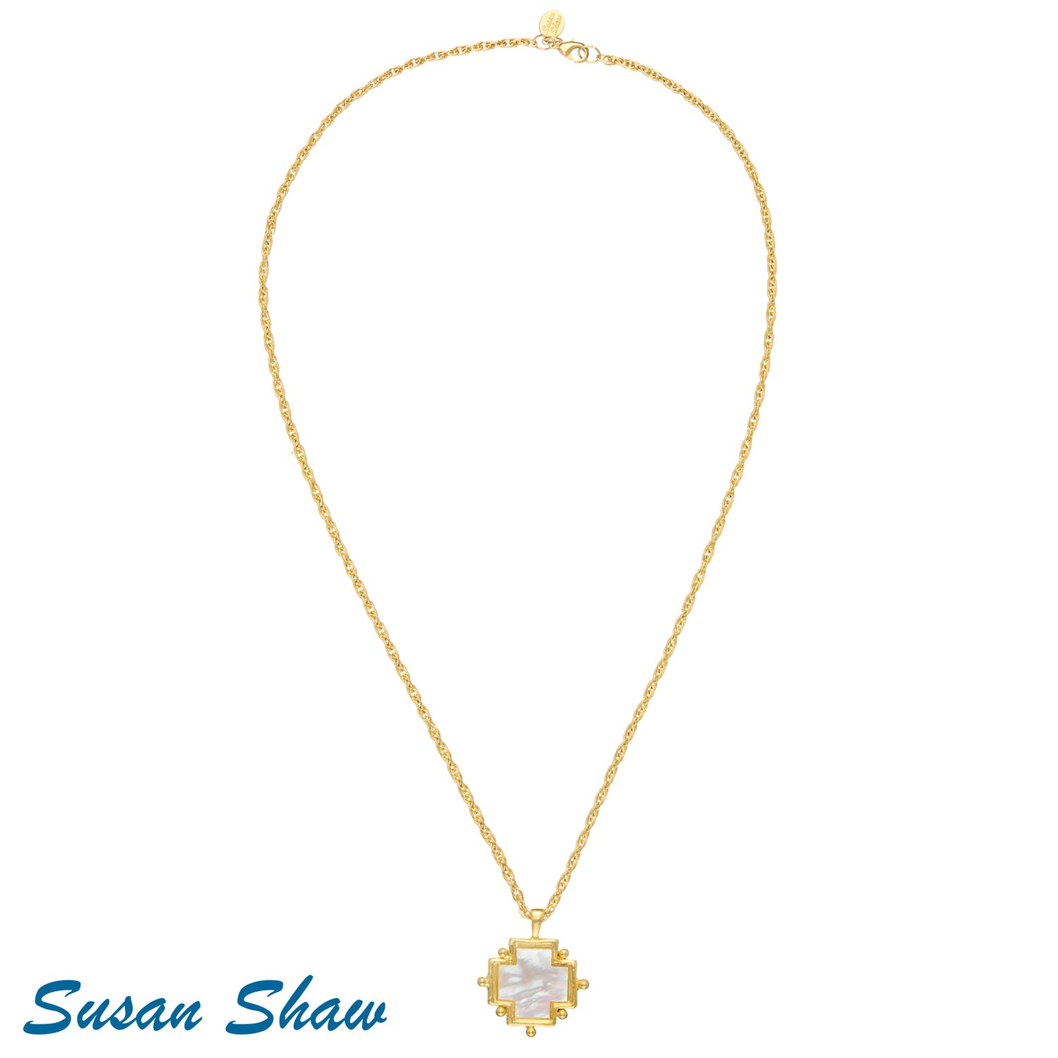 Susan Shaw Long Gold Necklace with Mother of Pearl Cross Pendant 3874LG