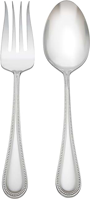 Crafted of ultra-heavy gauge stainless steel and part of the Lyndon Collection, this two-piece salad serving set includes a salad fork and serving spoon with a subtle beaded border on the handles.