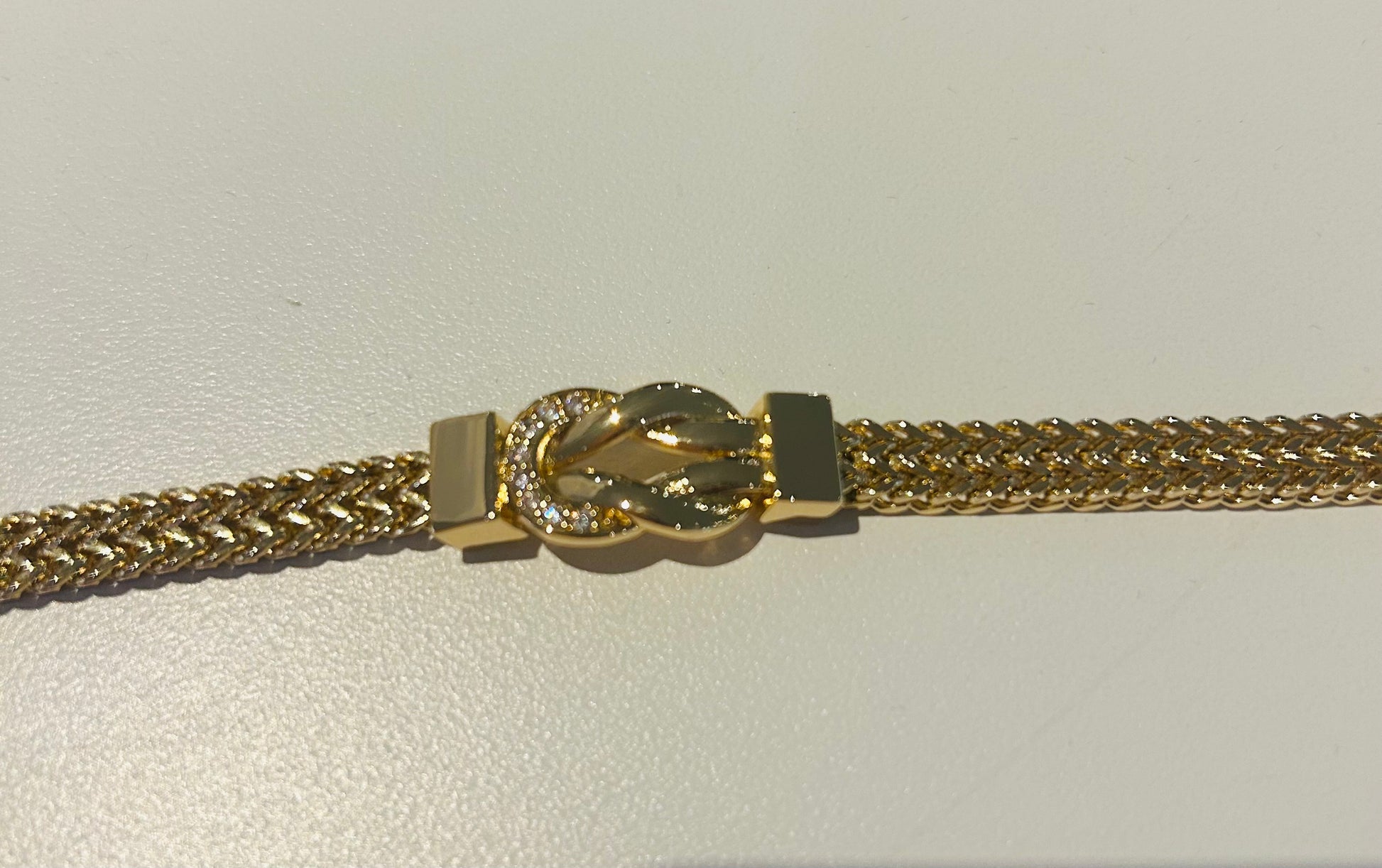 A gorgeous chain bracelet, adorned with infinity rhinestones and gold piece.