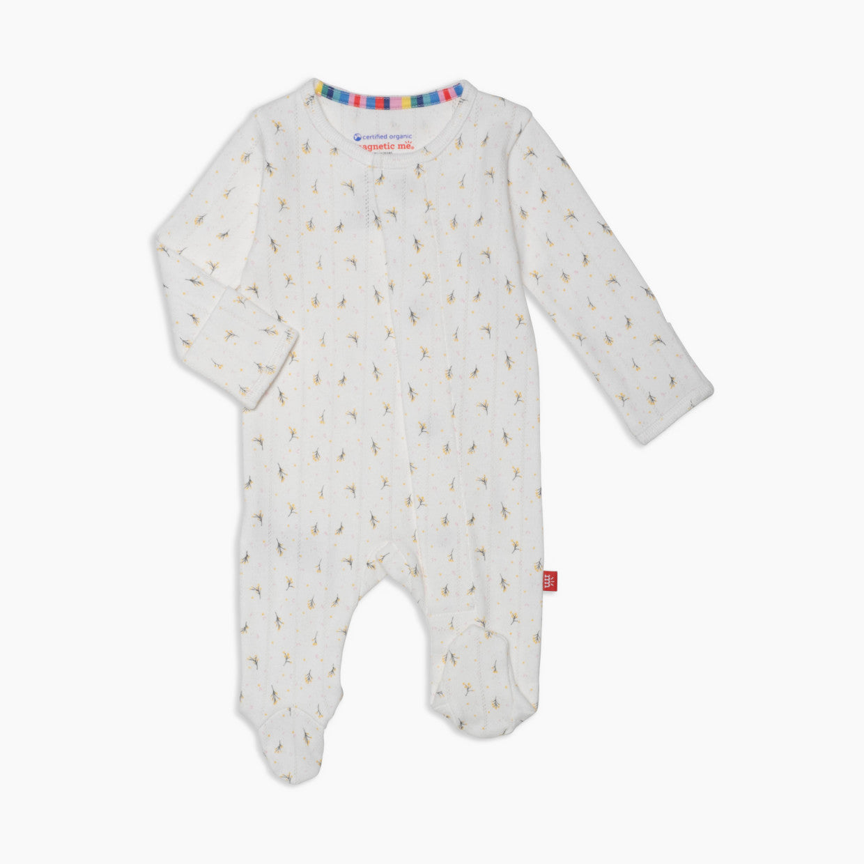 This soft organic cotton footed suit from Magnetic Me is made for quick and easy changes, even in the middle of the night. Smart Close magnetic closures help you get your baby all bundled up in just seconds, instead of fussing with snaps or zippers. Once you get the top one closed, the others snap in line, reducing your baby’s exposure to chilly air.