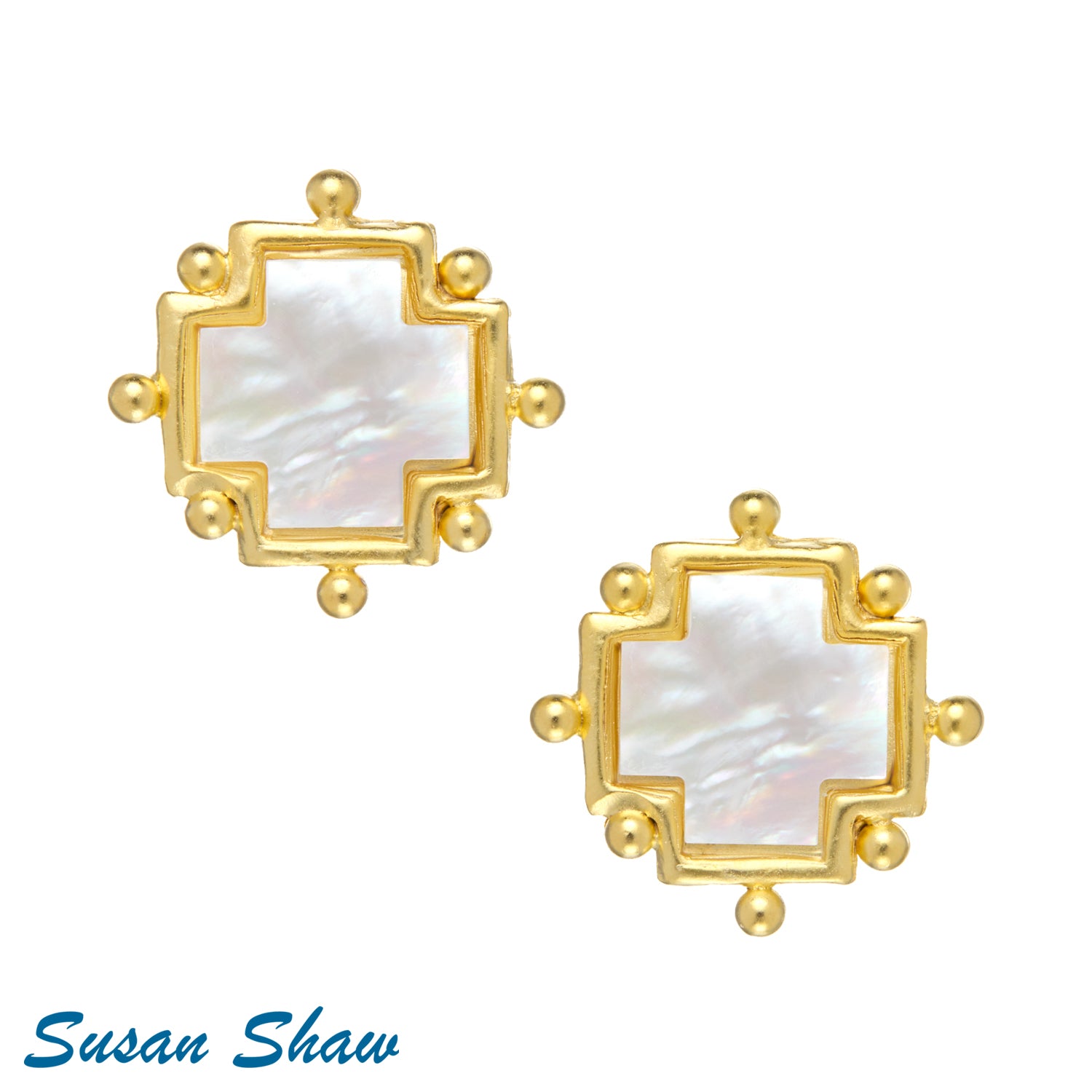 Susan Shaw Mother of Pearl Cross Earrings 1874G