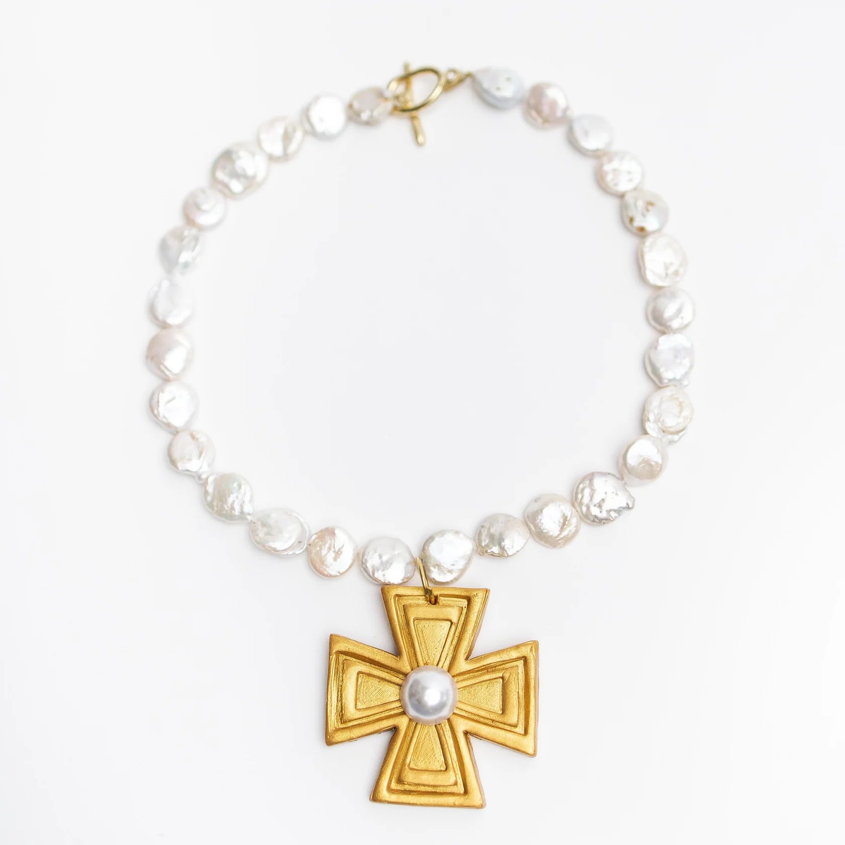 Mother of Pearl with Pearl Anna Cross Necklace