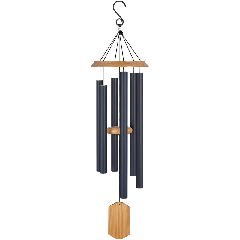 Each of our signature symphonies chimes is made of all wood and aluminum construction. The durable powder coated finish along with the industrial cord makes for a chime that will withstand the elements. Each of the tubes are tuned to a note in a specific key – this chime is tuned to the scale of A. This chime also features our adjustable striker! 7/8" diameter tubes