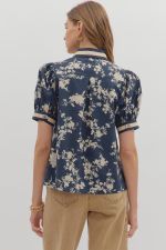 Navy Floral Print with Beige Contrast