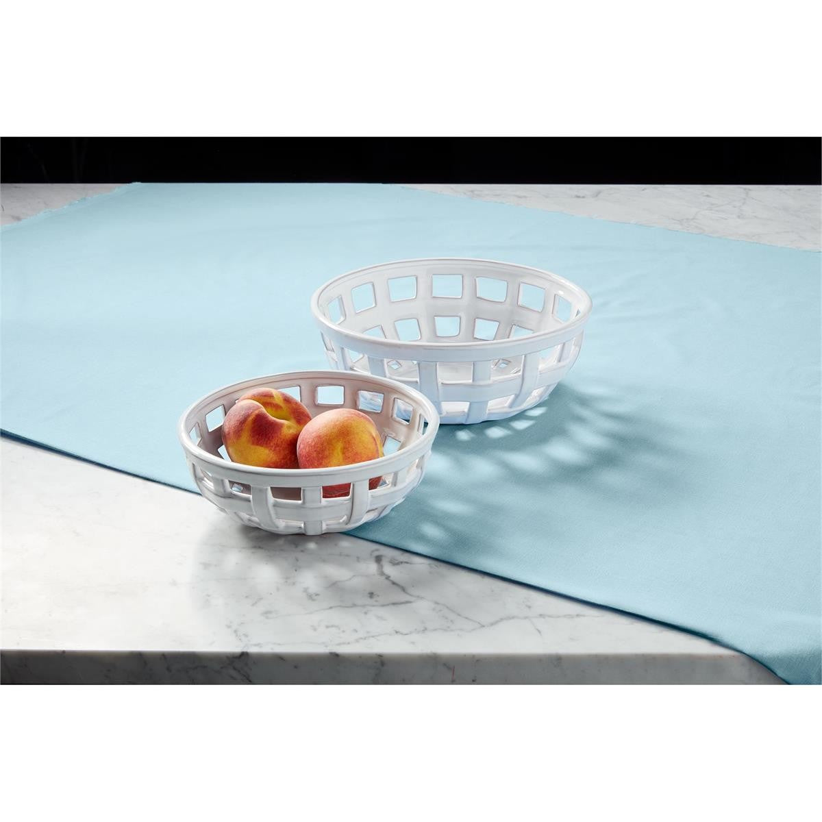 Set of two glazed terracotta basket weave bowls.