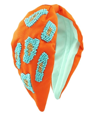 Orange and Turquoise Embroidered Headband