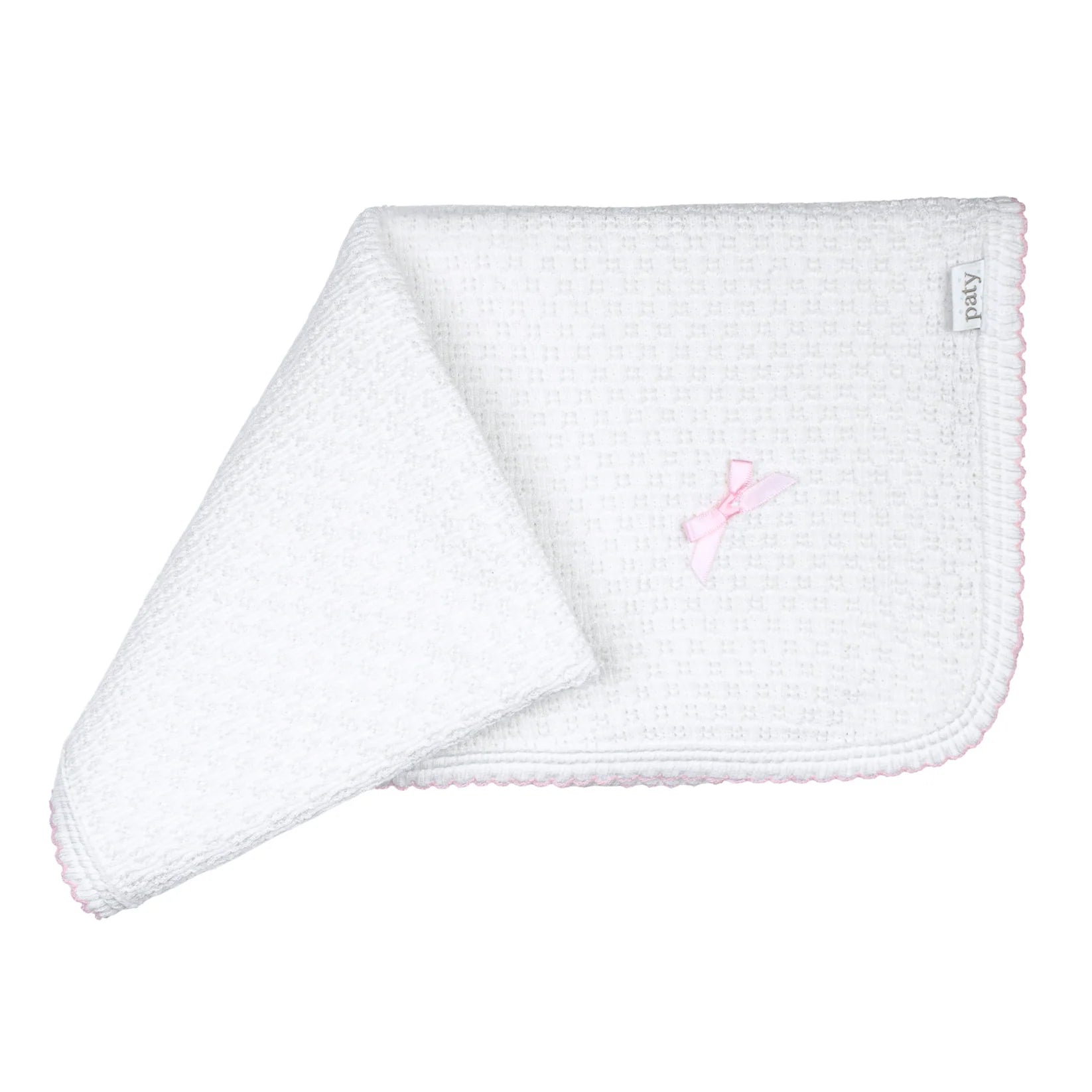Paty Knit receiving/Swaddle Blanket, Pima Trim white w/Blue Trim