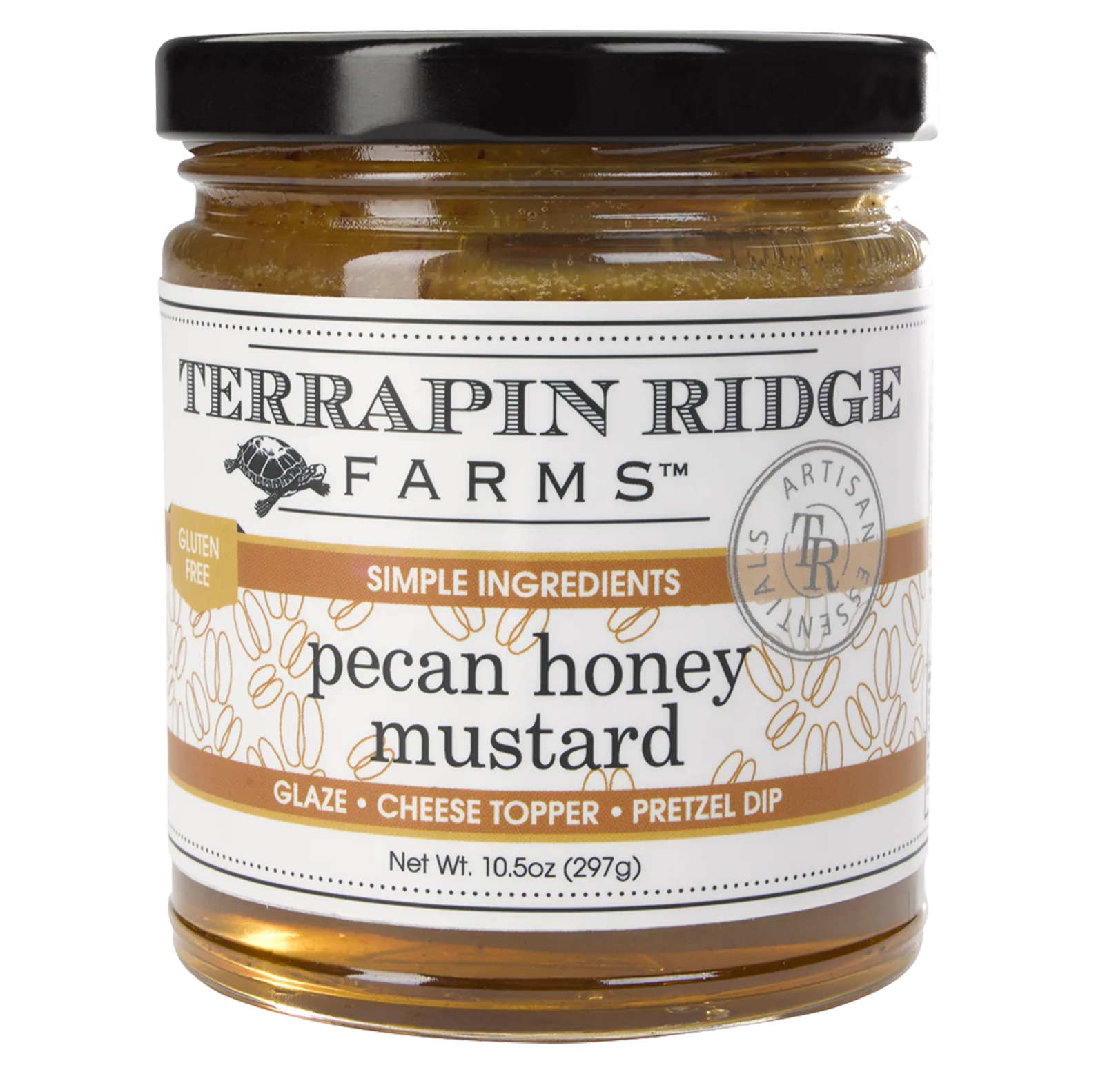The rich flavor of pecans give unique flavor to our sweet and tangy honey mustard. The perfect accompaniment for cheeses and to glaze meats and vegetables. Makes an incredible baked brie. Use as a sauce for pork tenderloin or roast turkey. Drizzle on squash, carrots and sweet potatoes. Also, wonderful as a pretzel dip.