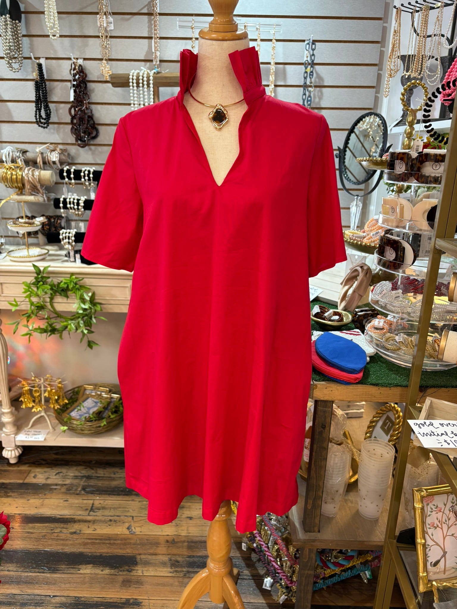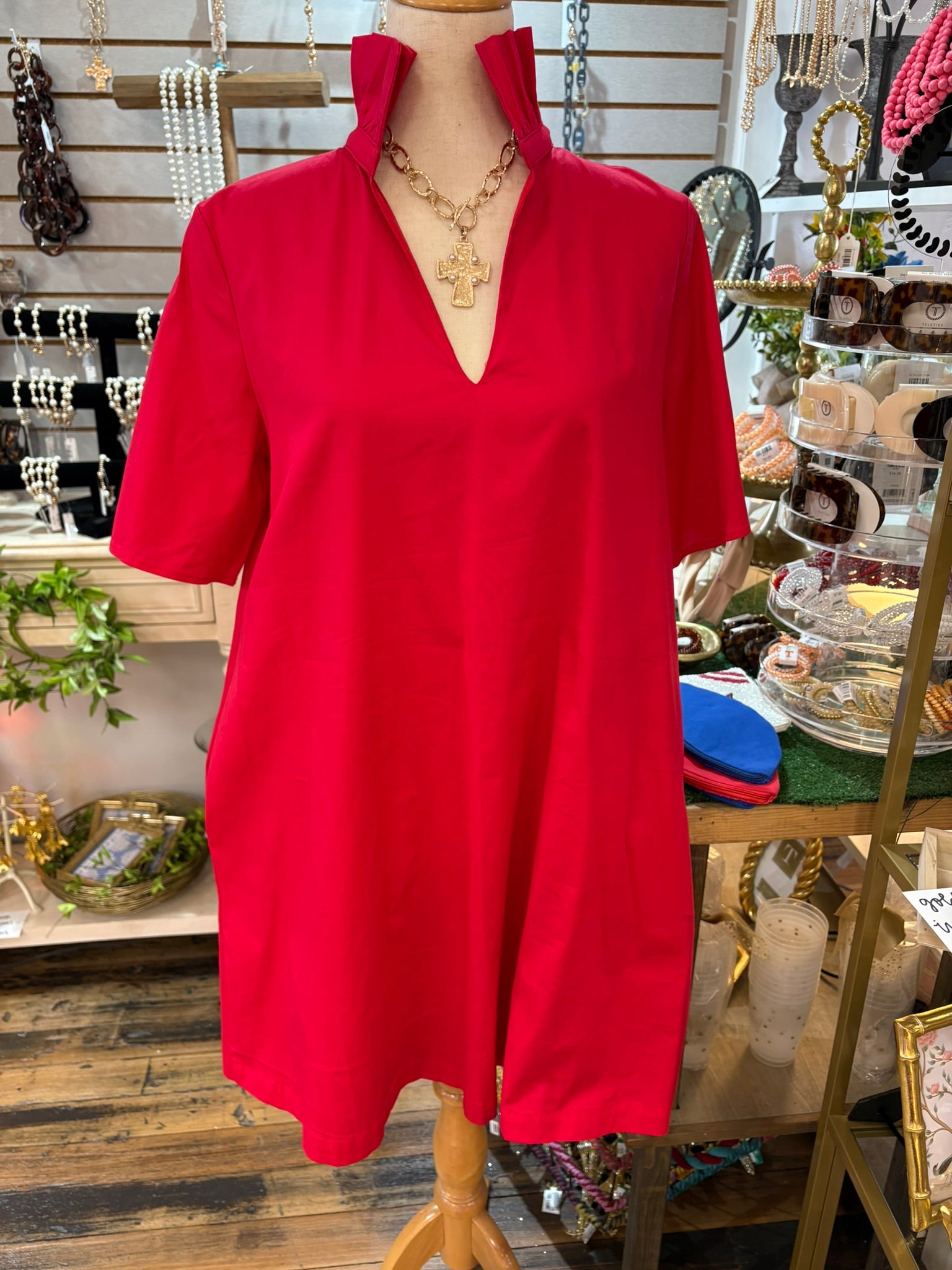 Red Ruffle Collar A Line Dress w/Pockets