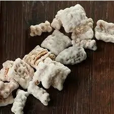 Candied pretzels, oat cereal, graham cereal, and roasted almonds are all individually coated in a silky, white confection. It's little bites of happiness for your mouth!