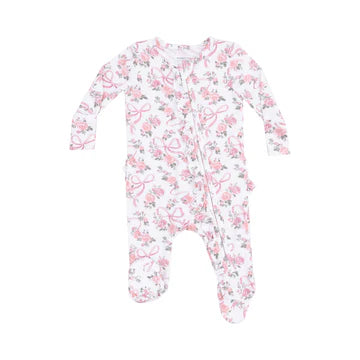 Ruffle Front Zipper Footie - 3-6 mos Ribbon & Flowers