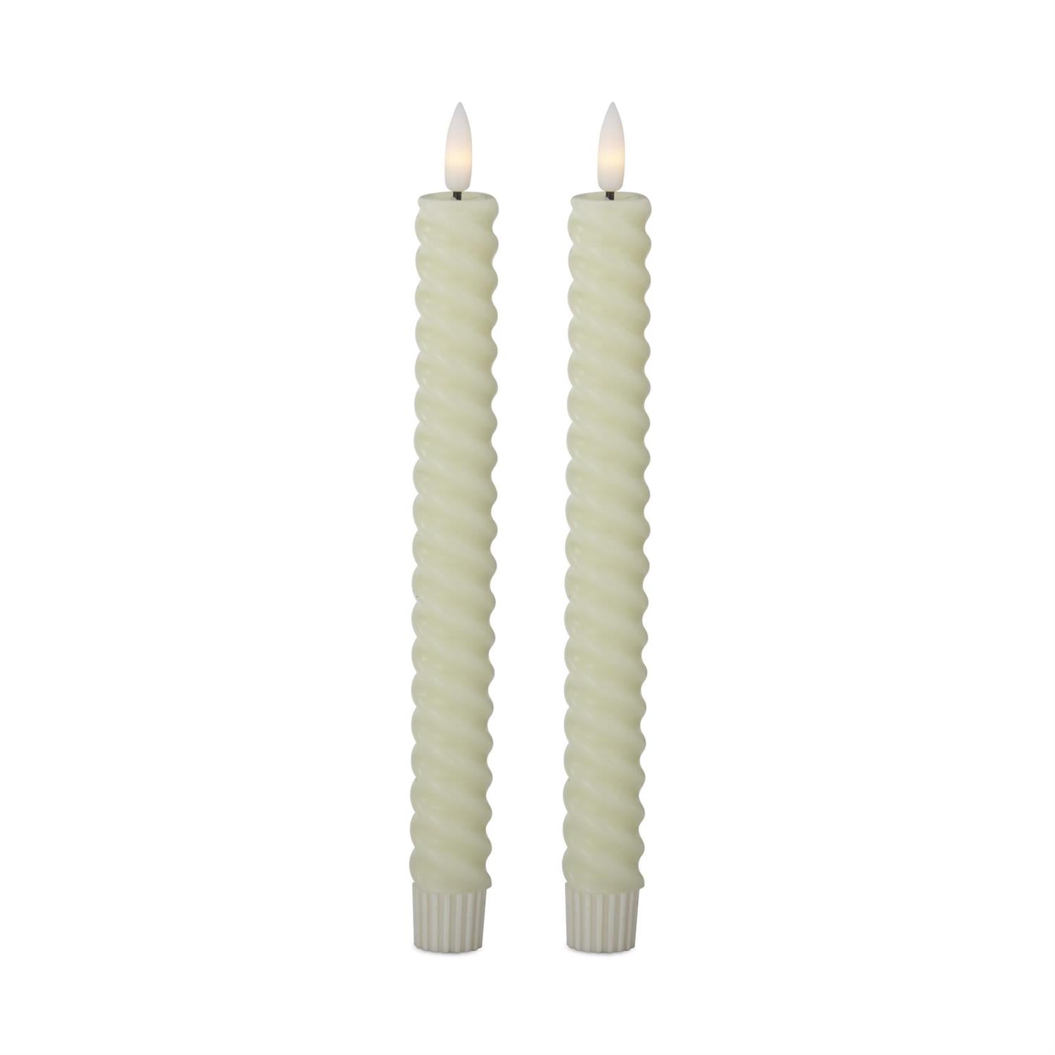 Set of 2 9.75 Inch Cream Spiral LED Taper Candles w/Timer