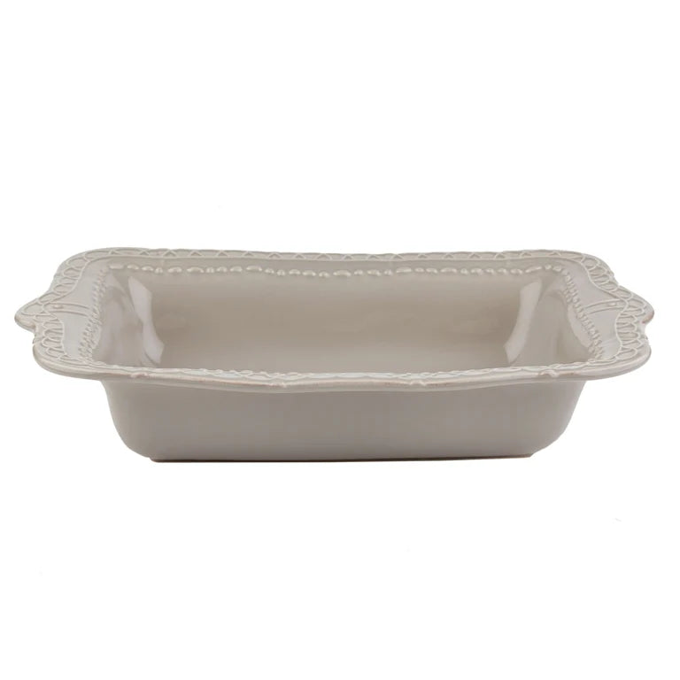 Delight your family and friends by serving their favorite meal in these striking embossed bakers. Entertaining is a pleasure when you freeze you entrée ahead of time and pop it in the oven as your guests walk in the door. Complete the elegant look by adding a polished nickel holder. Handcrafted in Portugal of ceramic stoneware. Freezer, oven, microwave and dishwasher safe.