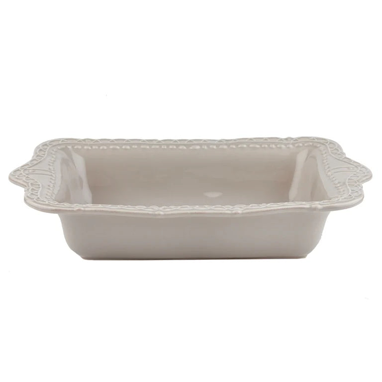 Delight your family and friends by serving their favorite meal in these striking embossed bakers. Entertaining is a pleasure when you freeze you entrée ahead of time and pop it in the oven as your guests walk in the door. Complete the elegant look by adding a polished nickel holder. Handcrafted in Portugal of ceramic stoneware. Freezer, oven, microwave and dishwasher safe.